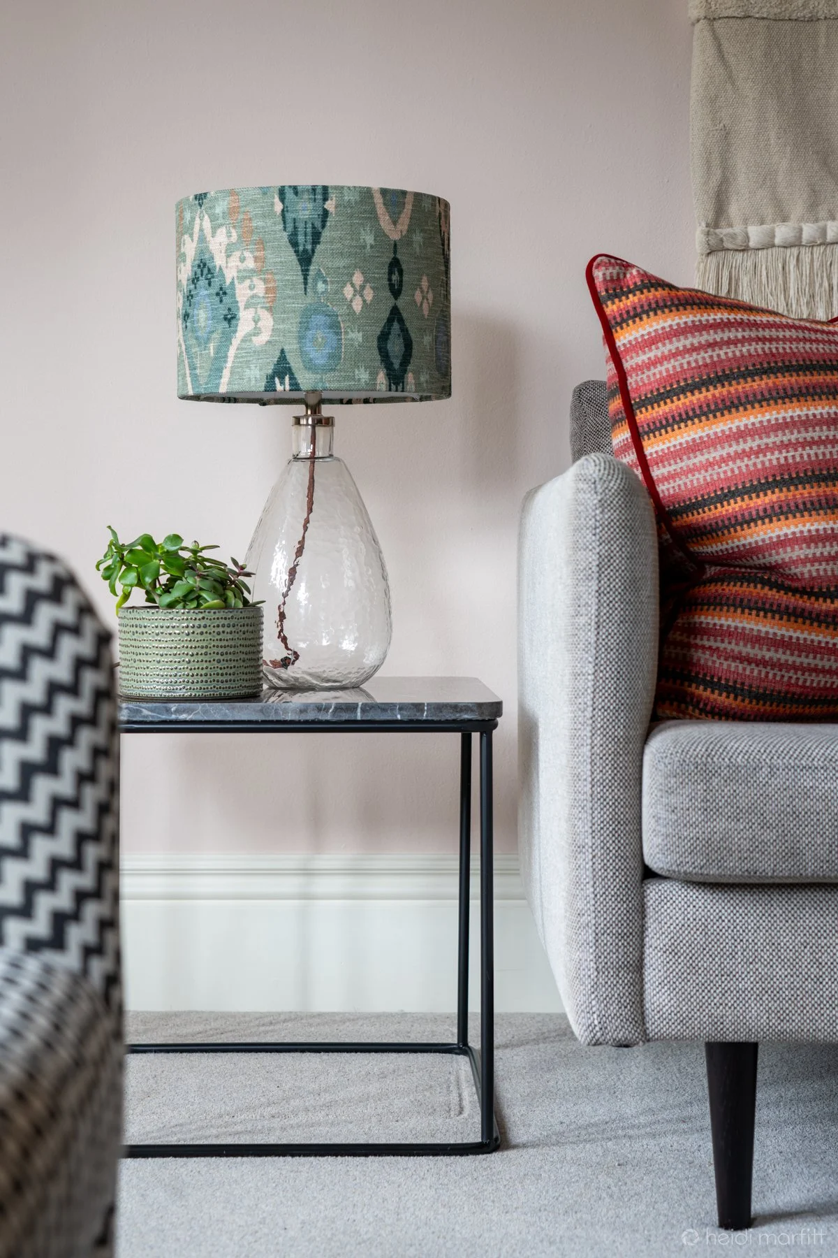 We sourced furniture, accessories, and soft furnishings as well as the statement wall hanging to bring the room together in an eclectic style the clients were after.