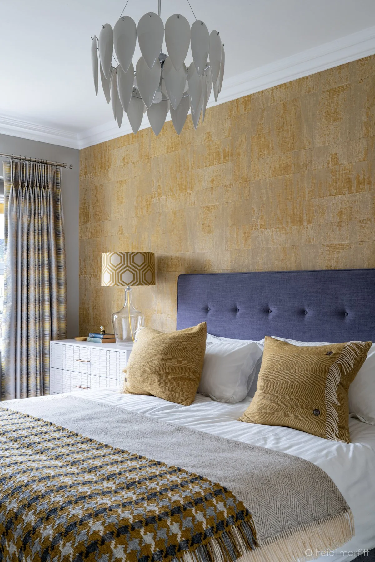 Our clients were part way through a two storey extension which would result in a new master bedroom, dressing room and ensuite. I was called in when the stress of the build had left them unable to make a decision on anything! We started from scratch, exploring how the clients wanted to feel in the space, and then developed a design to deliver their desired aesthetic of a relaxing hotel vibe with a mid-century feel.